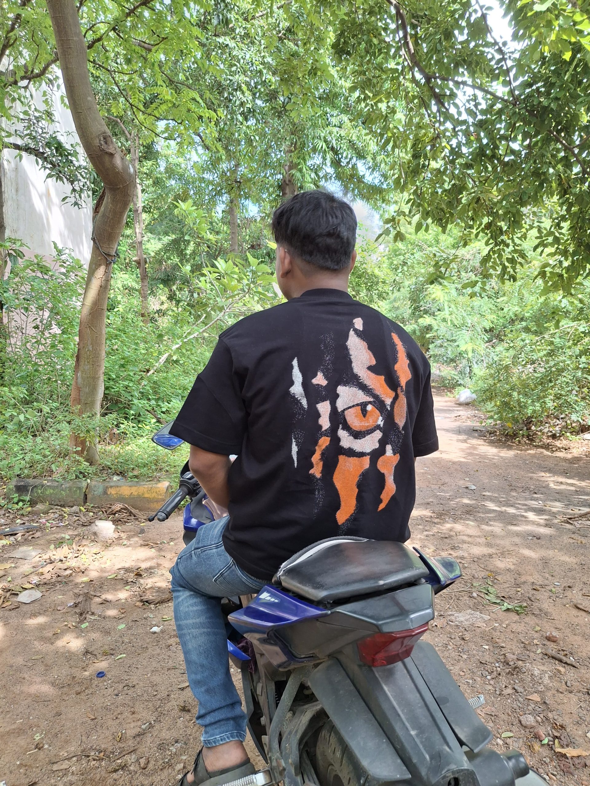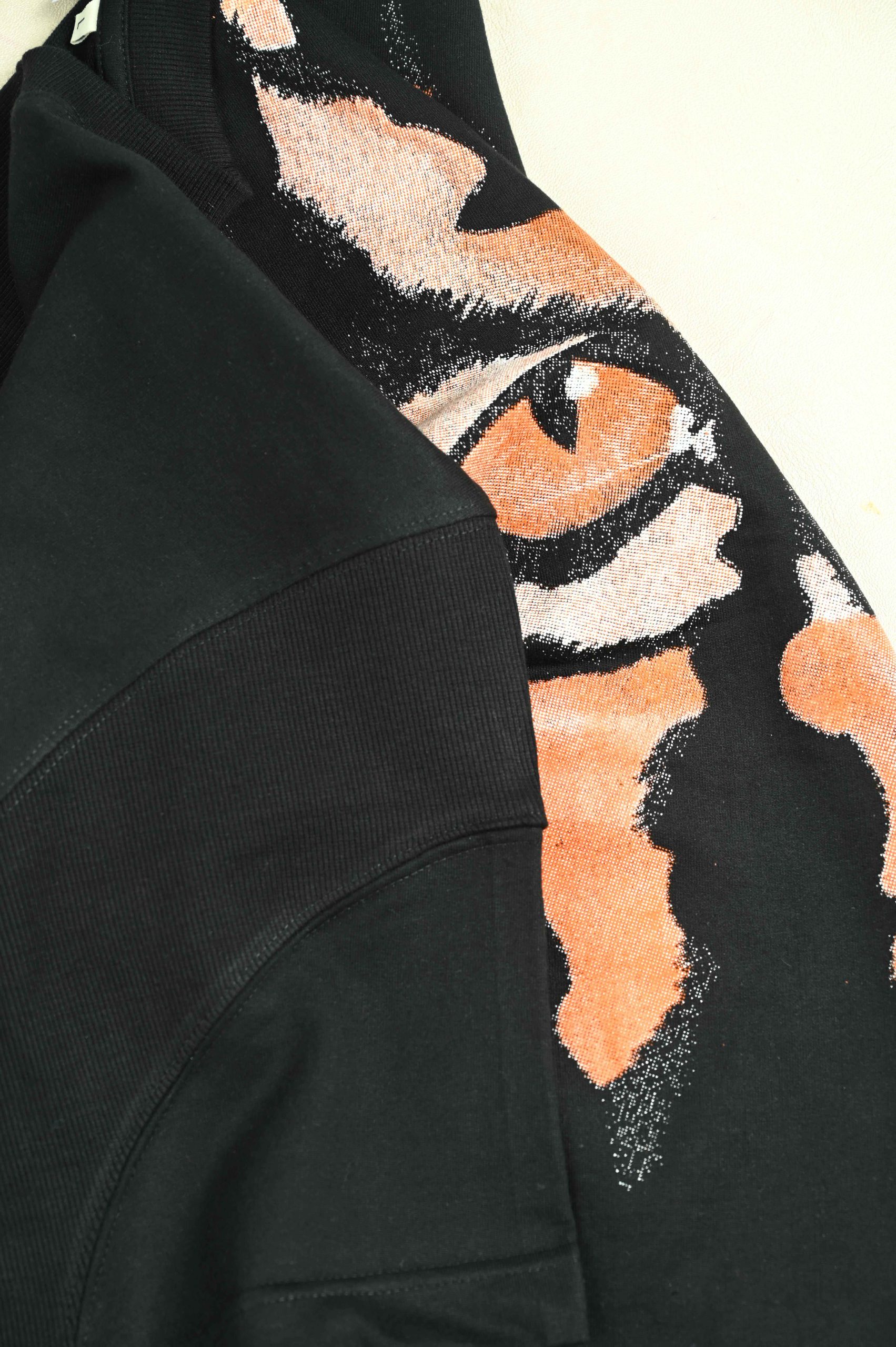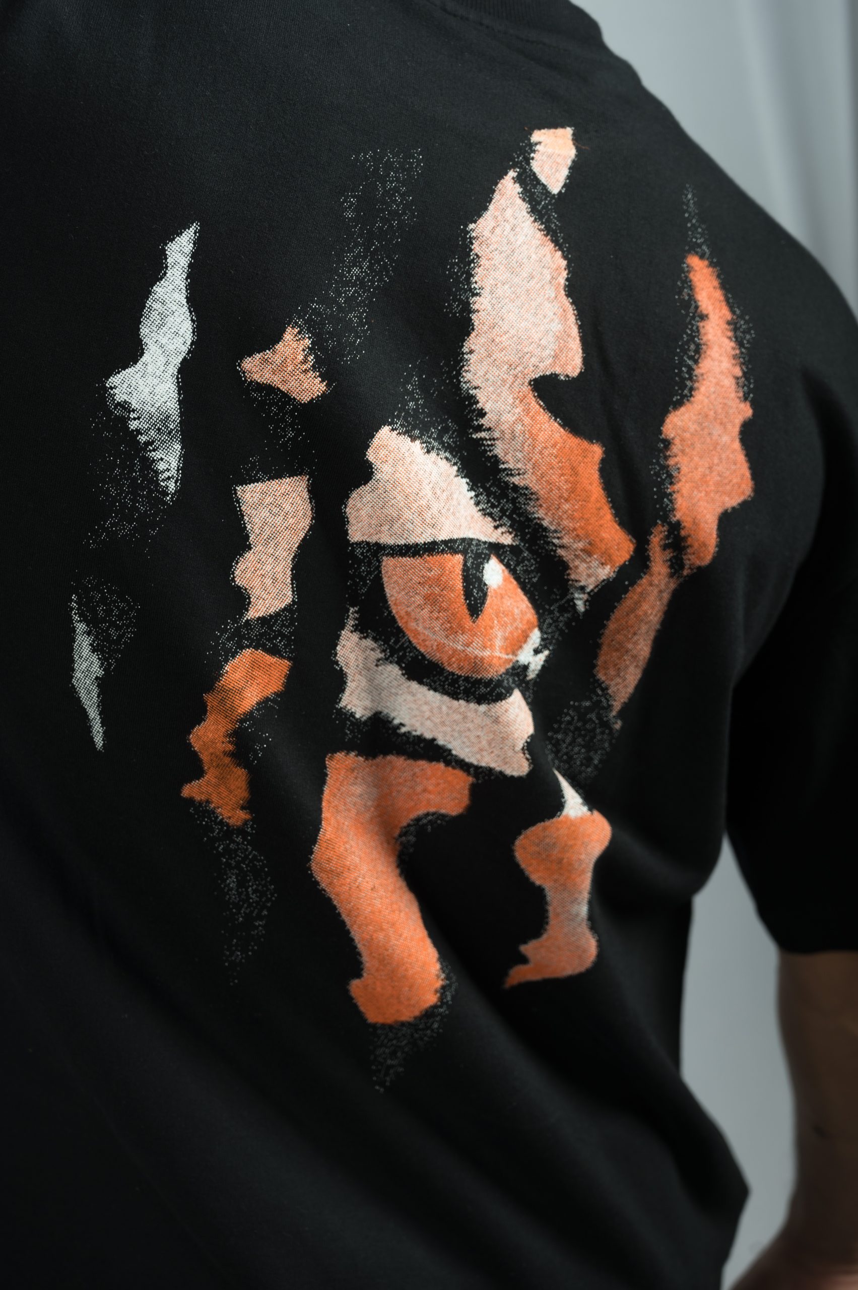 The front features the signature Blue Eye logo print on the chest, while the back showcases a striking tiger eye graphic design, symbolizing strength, focus, and individuality. With its classic crew neck, ribbed collar, and bold artwork, this piece makes a statement from every angle.